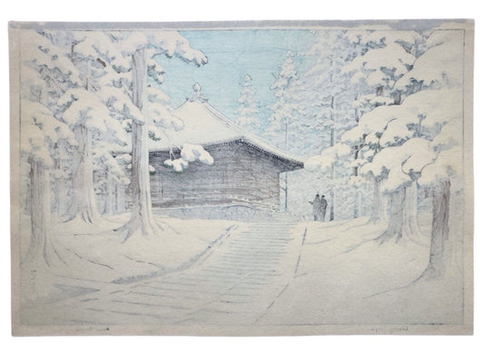 Estampe Japonaise de Hasui Kawase - Le temple Chūson-ji sous la neige