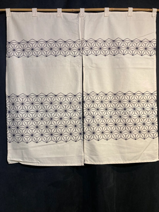 Les Noren sont principalement fabriqués en coton, en lin, ou encore en chanvre, des matières qui leur confèrent résistance et durabilité. Traditionnellement, le tissu est teint avec des colorants naturels comme l’indigo japonais (aizome), une teinture bleue prisée pour sa profondeur et sa tenue dans le temps. Cette couleur est très répandue parmi les Noren pour son caractère apaisant et son association à la sérénité. Le lin, quant à lui, est souvent apprécié pour son aspect plus léger, idéal pour les Noren d'été qui laissent passer plus de lumière et d'air.