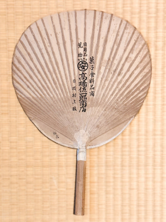Éventail Japonais ancien ivoire et mordoré, reflets taupe