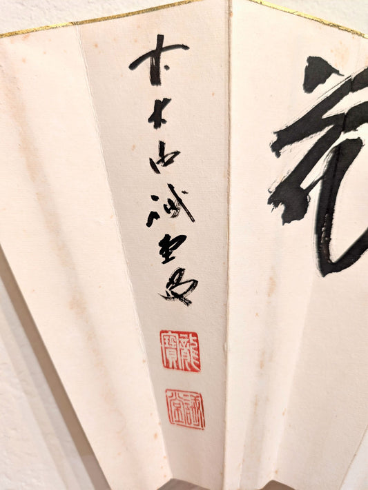 Eventail traditionnel Japonais blanc - Calligraphie Neige, Lune, Fleur