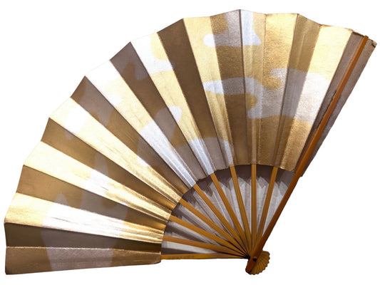Eventail traditionnel Japonais or et argent motif pins