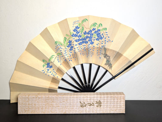 Eventail traditionnel Japonais et branche de glycine sur fond or