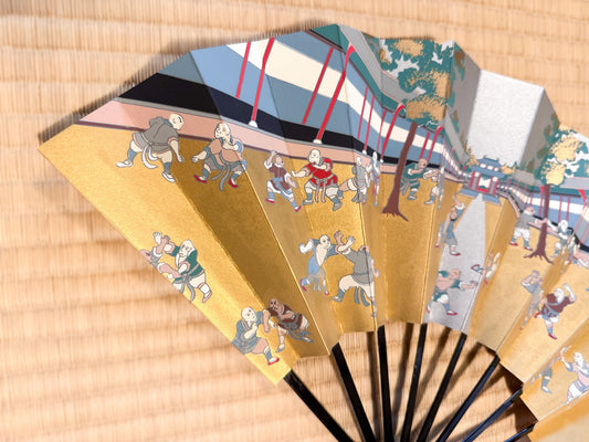 Éventail Japonais Sensu - Scène de Lutte dans un Temple