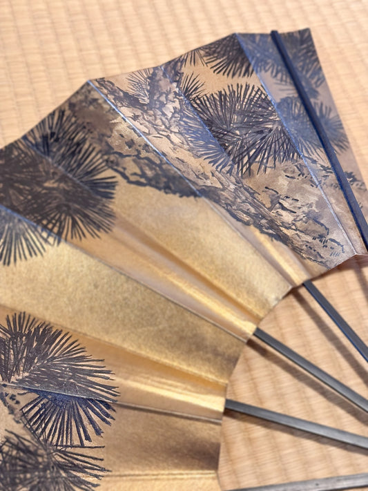 Éventail Japonais Sensu - Sumi-e Pin sur Fond Or
