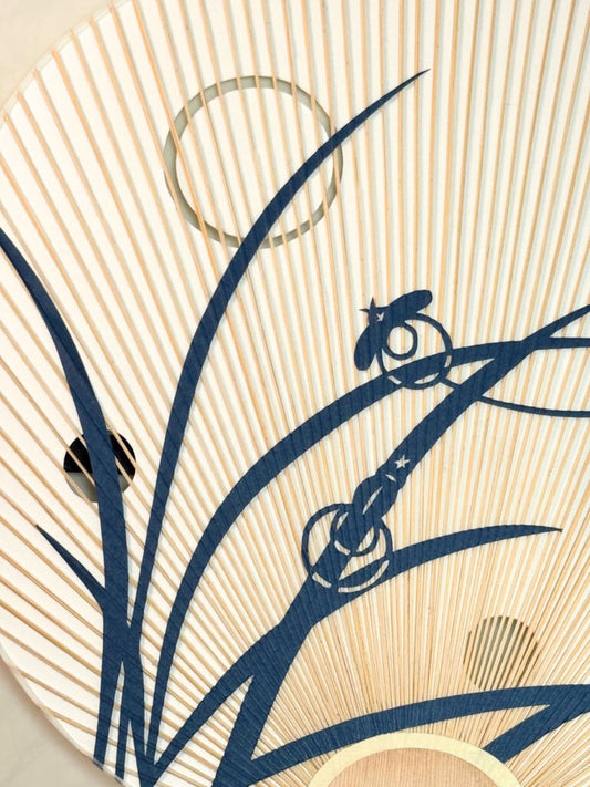 Eventail Uchiwa Contemporain ajouré - Lucioles et Herbes d'été sous la Lune
