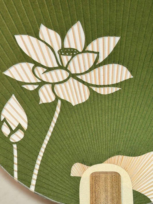 Eventail Uchiwa Contemporain vert - Fleur de Lotus