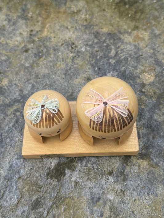 Couple de Poupées Kokeshi sur Socle | Petits noeuds