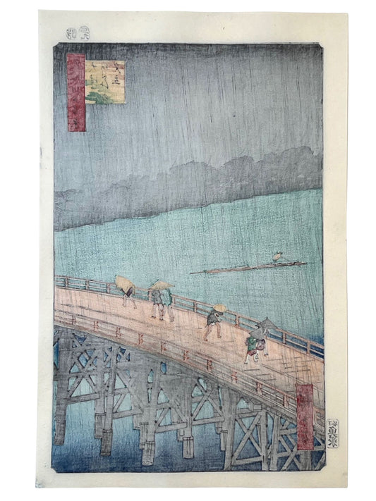 Estampe Japonaise d'Hiroshige - 100 vues d'Edo - Averse soudaine sur le pont Ohashi