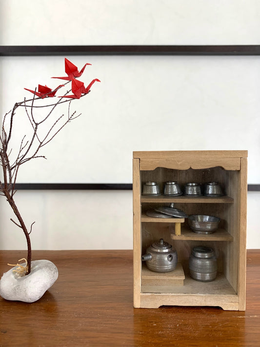 Ustensiles de cuisine japonais et son armoire miniature | Décor pour poupées