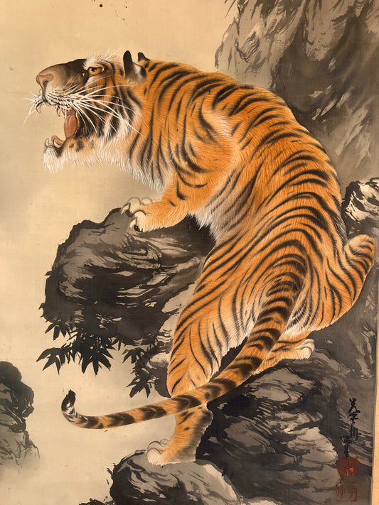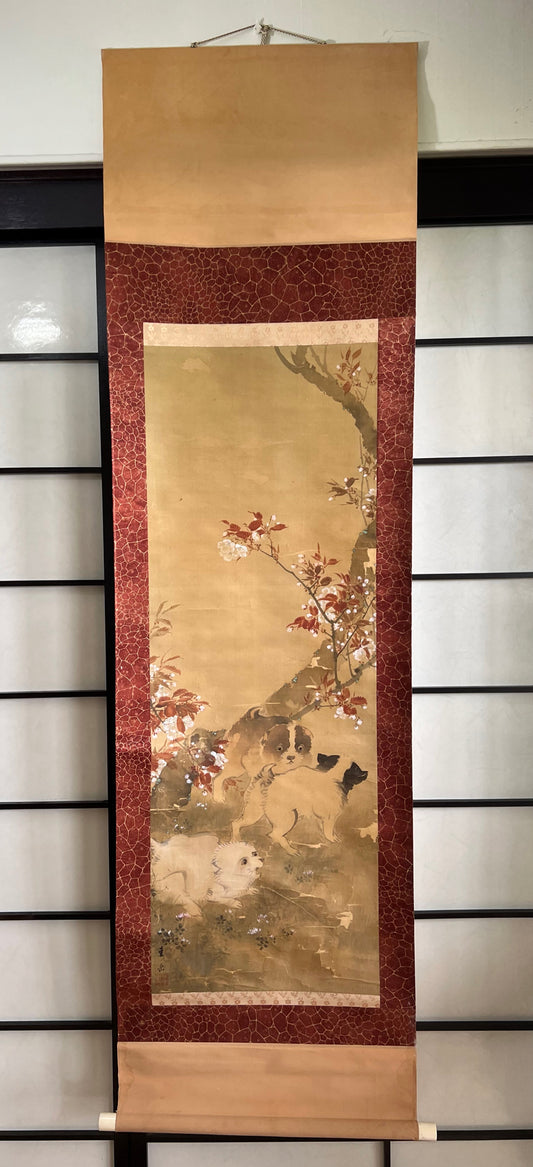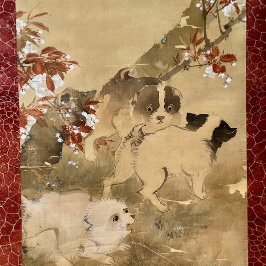 Kakejiku sakura et chiots jouant de Keigaku Harada