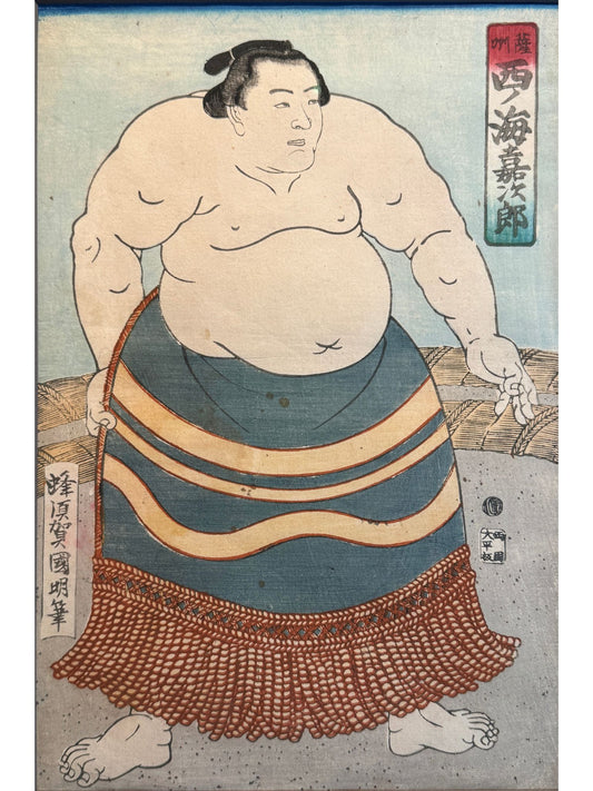Estampe Japonaise Encadrée de Kuniaki Utagawa | Le Sumo Nishinoumi Kajiro