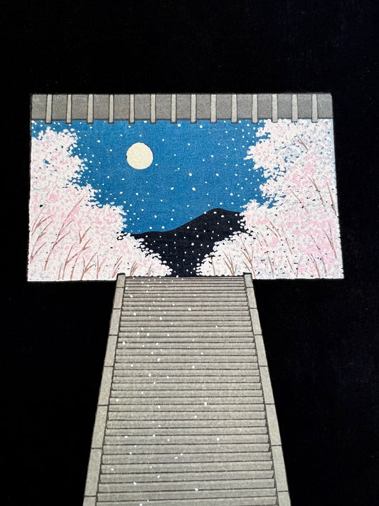 Estampe Japonaise de Teruhide Kato, Escalier vers une Nuit de Printemps