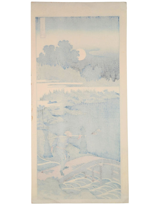 Estampe Japonaise de Hokusai, récolte des joncs au clair de lune