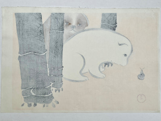 Estampe Japonaise de Kamisaka Sekka | Chiots et Bambous