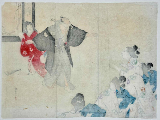 Estampe Japonaise Kuchi-e de Mizuno Toshikata - Colin-maillard