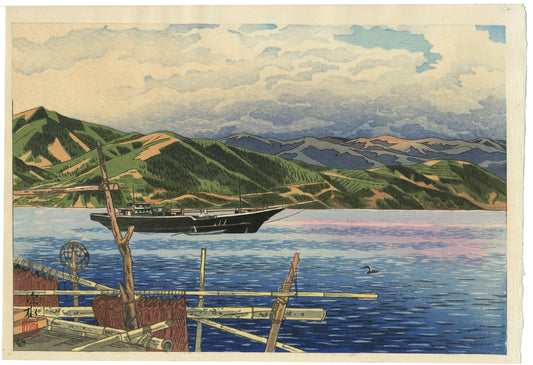 Estampe Japonaise Encadrée de Shinsui Ito, Lueurs du Crépuscule à Ajiro