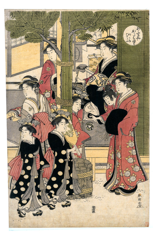 Estampe Japonaise Encadrée de Shunchô Katsukawa, Nouvel An au Yoshiwara