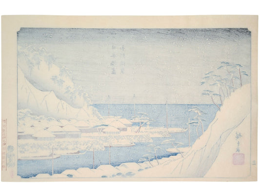 Estampe Japonaise de Hiroshige - Neige sur le pont d’Uraga dans la province de Sagami
