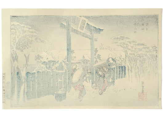 Estampe Japonaise de Hiroshige - Kyôto Meisho - Le sanctuaire de Gion sous la neige