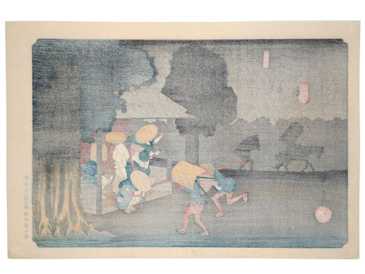 Estampe Japonaise de Hiroshige - Les 69 Relais du Kisokaidô n°46 Nakatsugawa sous la pluie