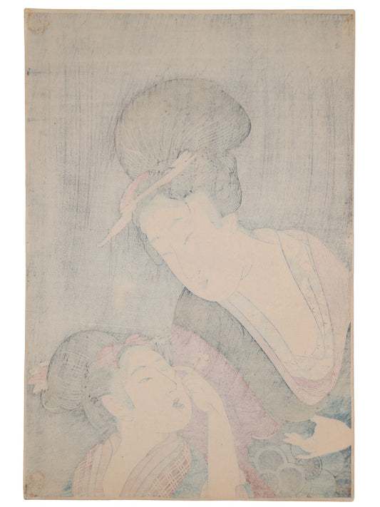 Estampe Japonaise de Utamaro Kitagawa, La bavarde et la petite coquine