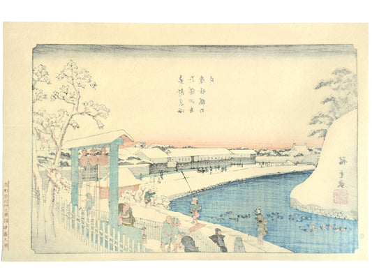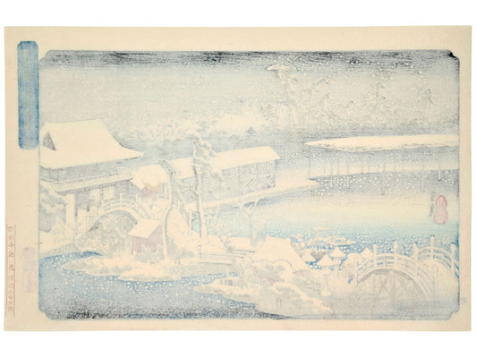 Estampe Japonaise de Hiroshige - Toto Meisho - Le canal Benkei sous la neige