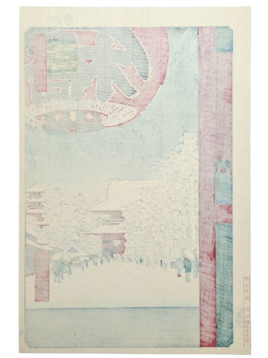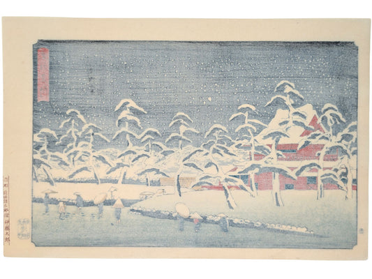 Estampe Japonaise de Hiroshige - 100 vues d'Edo - Neige au temple Kinryuzan à Asakusa