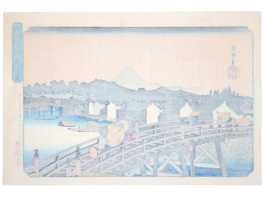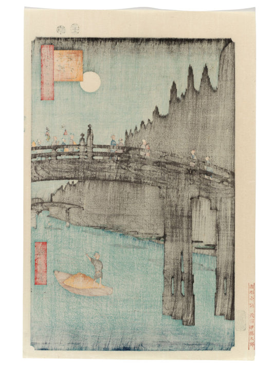 Estampe Japonaise de Hiroshige - 100 vues d'Edo - le Temple Ekō-in et le pont Moto-Yanagi