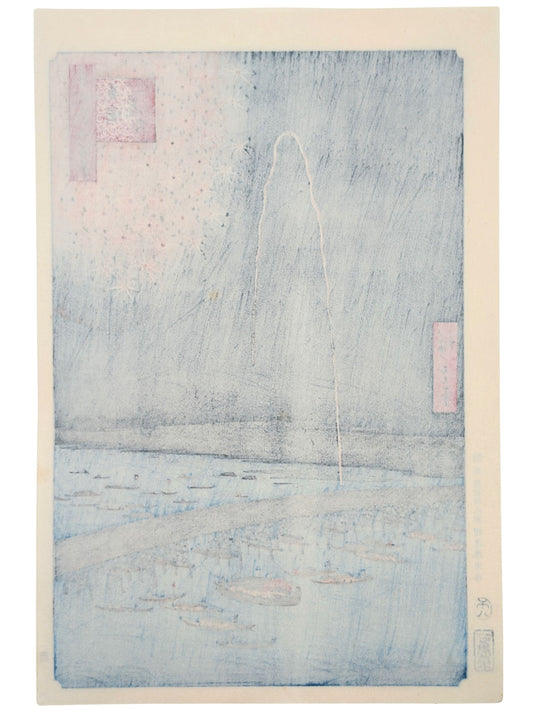Estampe Japonaise de Hiroshige - 100 vues d'Edo - Feu d'artifice à Ryogoku