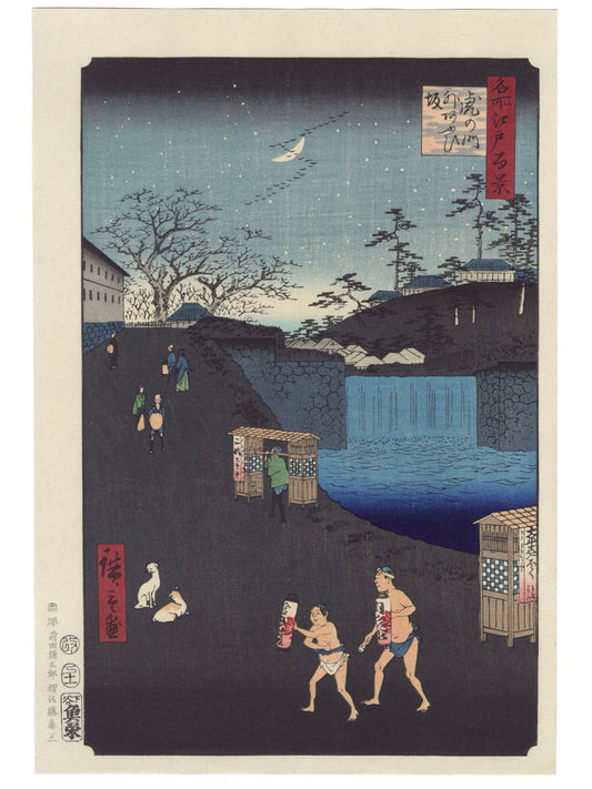 Estampe Japonaise de Hiroshige - Toto Meisho - Ecouter les criquets sur le mont Dokan