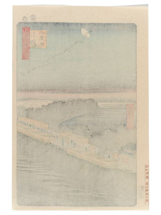 Estampe Japonaise de Hiroshige - 100 vues d'Edo - Digue de Nihon au Yoshiwara