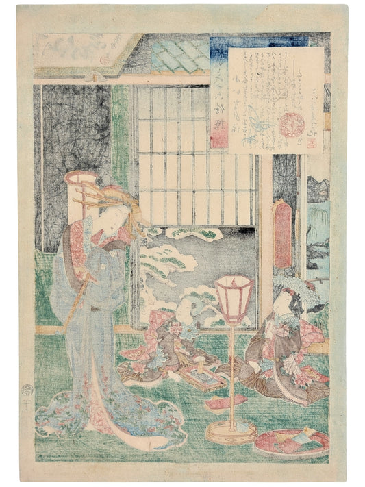 Estampe Japonaise de Kunisada | Courtisane Hanamurasaki à la cérémonie du thé