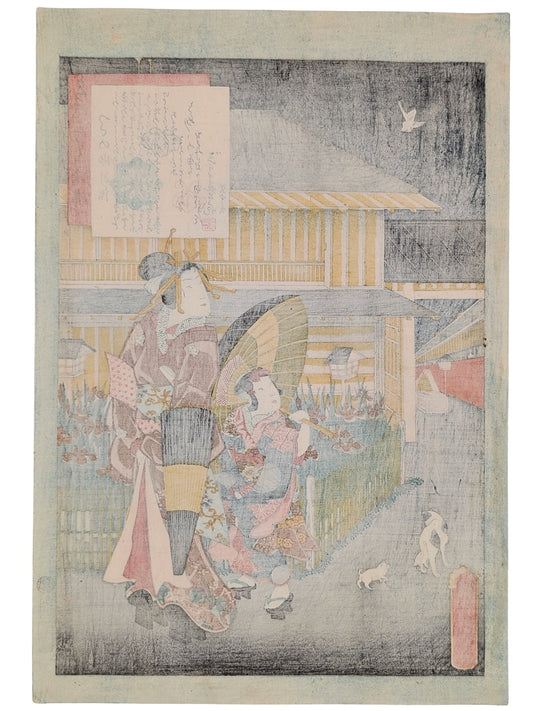 Estampe Japonaise de Kunisada | Courtisane Yorozuyama croisant une connaissance, N°20