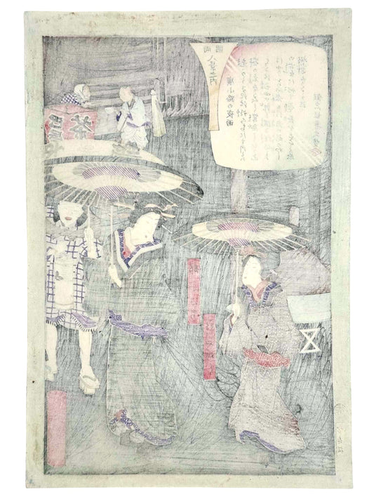 Estampe Japonaise de Yoshiiku | Pluie nocturne à Hirokoji