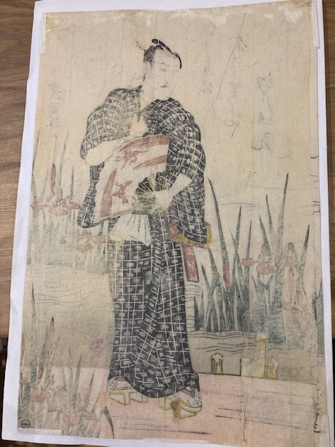 Estampe Japonaise de Toyokuni I Utagawa | L'acteur Shigan sur un ponton aux iris