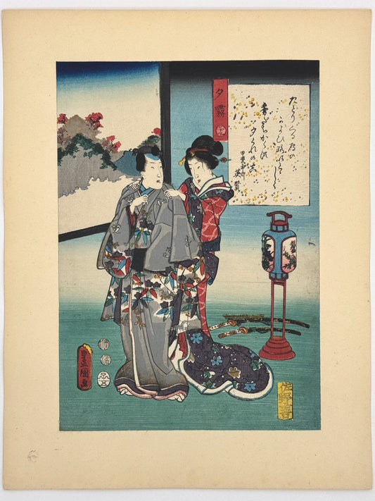 Estampe Japonaise de Kunisada | série du Genji moderne | Chapitre 52 : l'éphémère