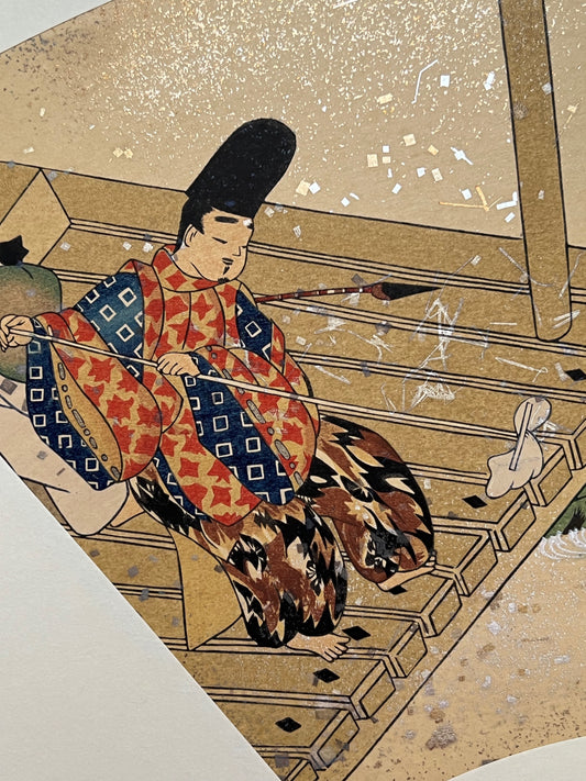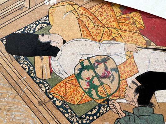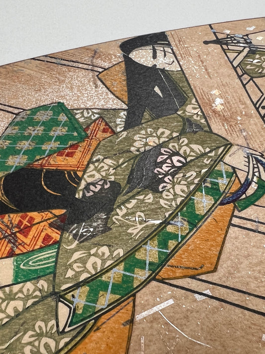 Estampe Japonaise Eventail Sutra du Lotus | N° 6 Femme en kimono assoupie