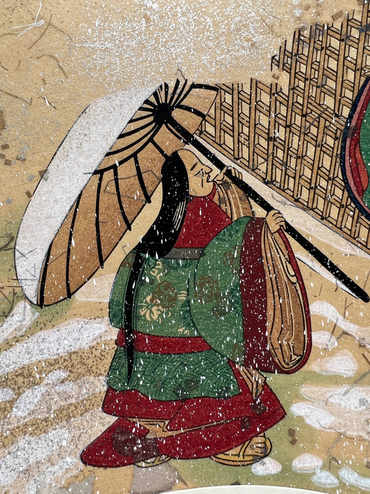Estampe Japonaise Eventail Sutra du Lotus | N° 8 Matin neigeux