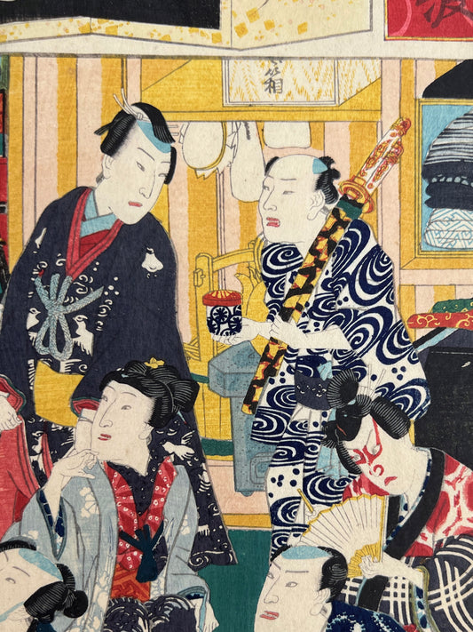 Estampe Japonaise de Kunisada Toyokuni III | Acteurs de Nô et fête de Tanabata