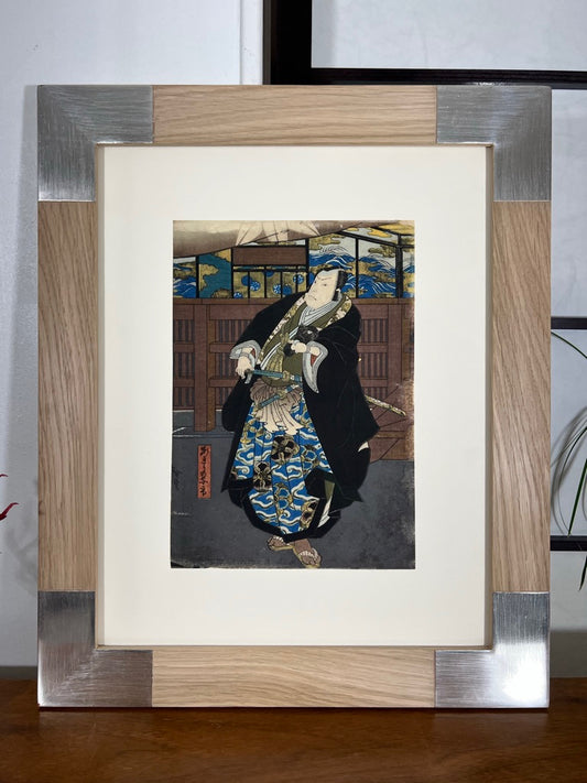 Estampe Japonaise Encadrée de Hirosada Konishi, L'acteur de Théatre Kabuki Arashi Ruri