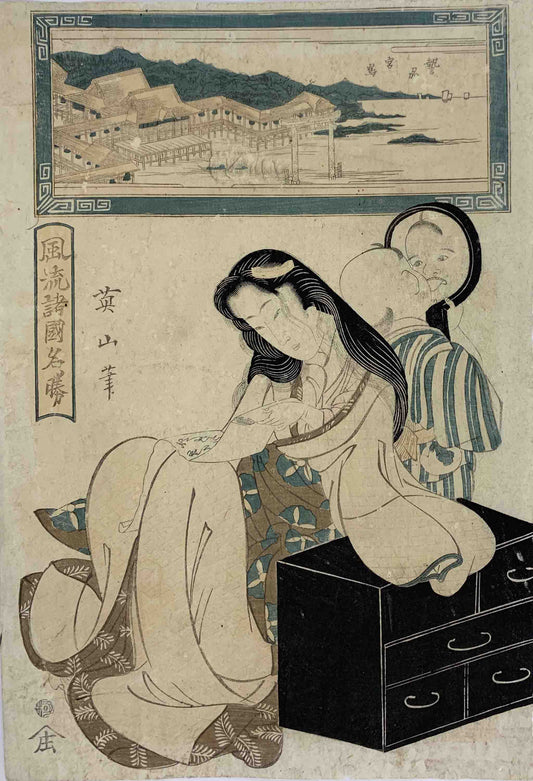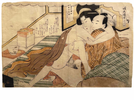 Estampe Japonaise Encadrée de Shuncho Katsukawa | Shunga - Erotique
