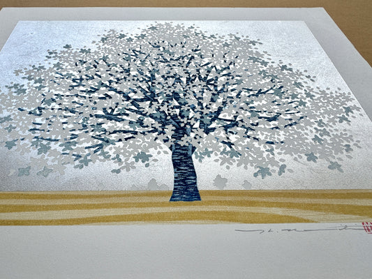 Estampe Japonaise de Teruhide Kato, Cerisier Pleureur du Japon - Sakura No Fu
