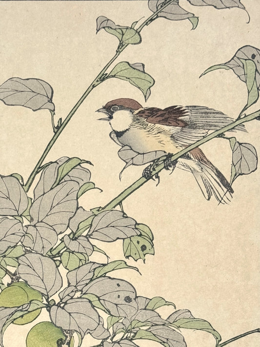 Estampe Japonaise de Imao Keinen | Moineau et Prunier