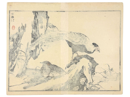 Estampe Japonaise de Kono Bairei, Couple de paons