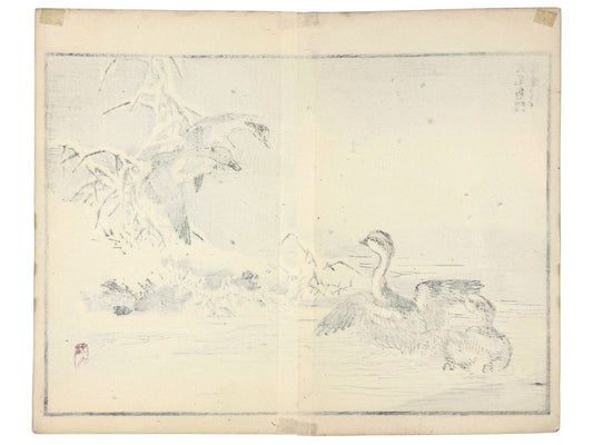 Estampe Japonaise de Kono Bairei, Canards dans la neige