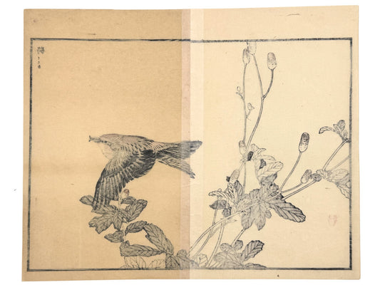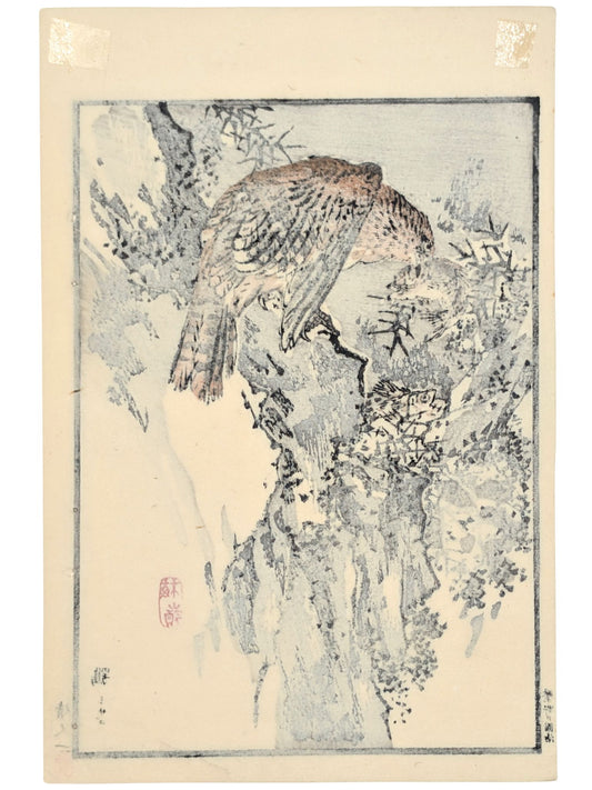 Estampe Japonaise de Kono Bairei, Faucon tenant un moineau entre ses serres