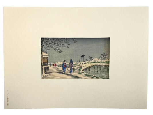 Estampe Japonaise de Yasuji Inoue, Le chemin de halage de Kôme sous la neige