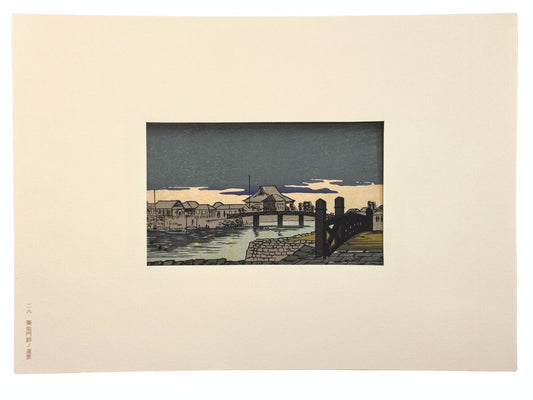 Estampe Japonaise de Yasuji Inoue, Croissant de lune à Hyakubonbashi