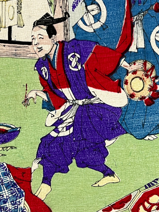 Estampe Japonaise Chirimen-e | Réception chez un seigneur