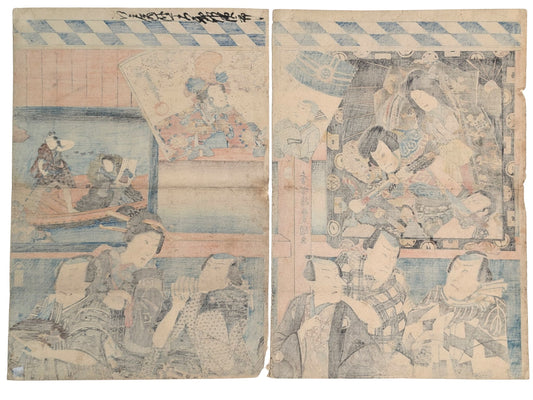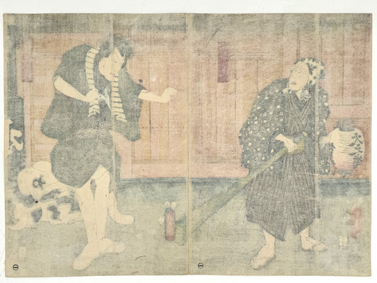 Estampe Japonaise de Kunisada, Deux Acteurs de Kabuki Danjuro VIII